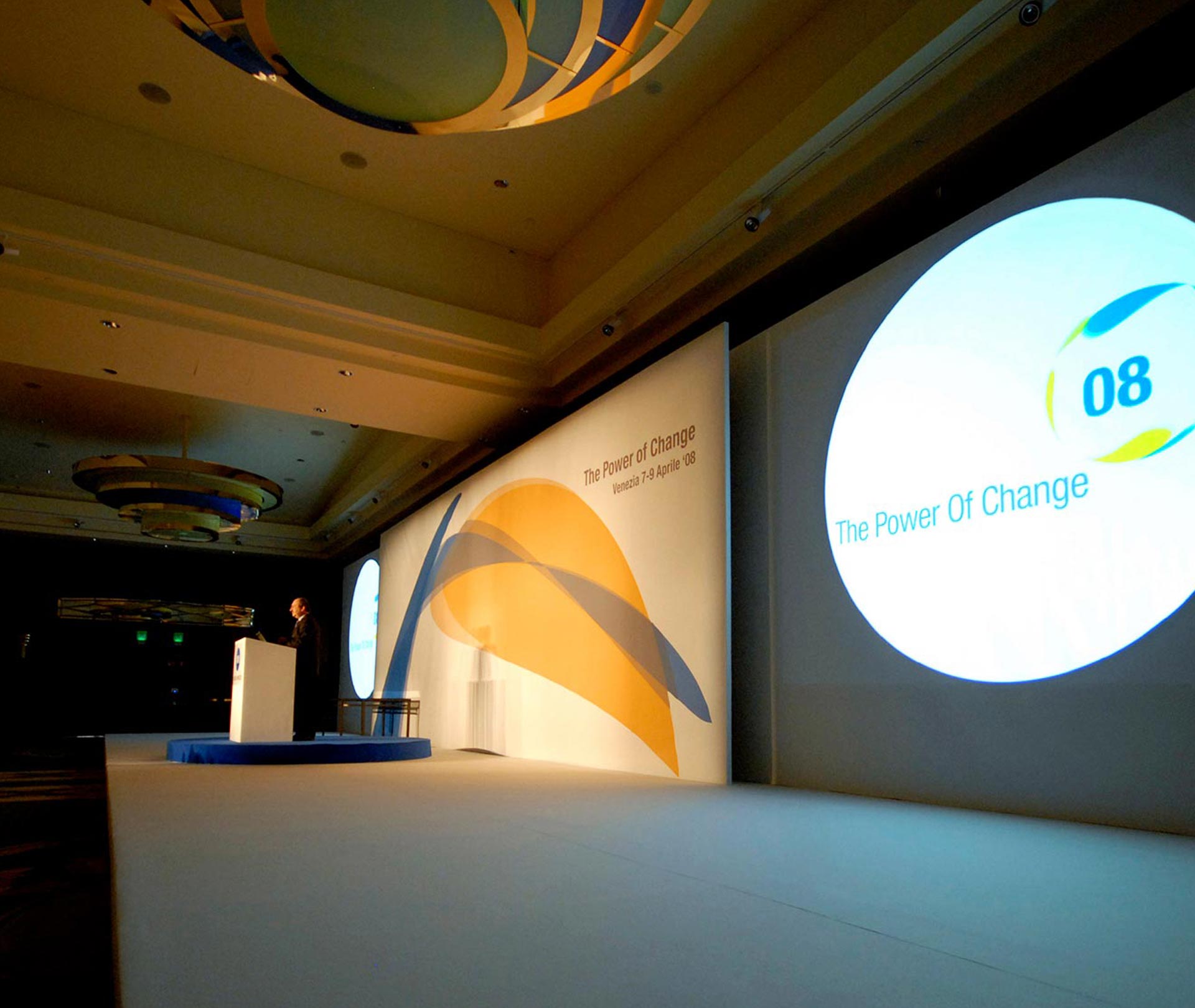 allestimenti scenografici, palchi, pedane per relatori,